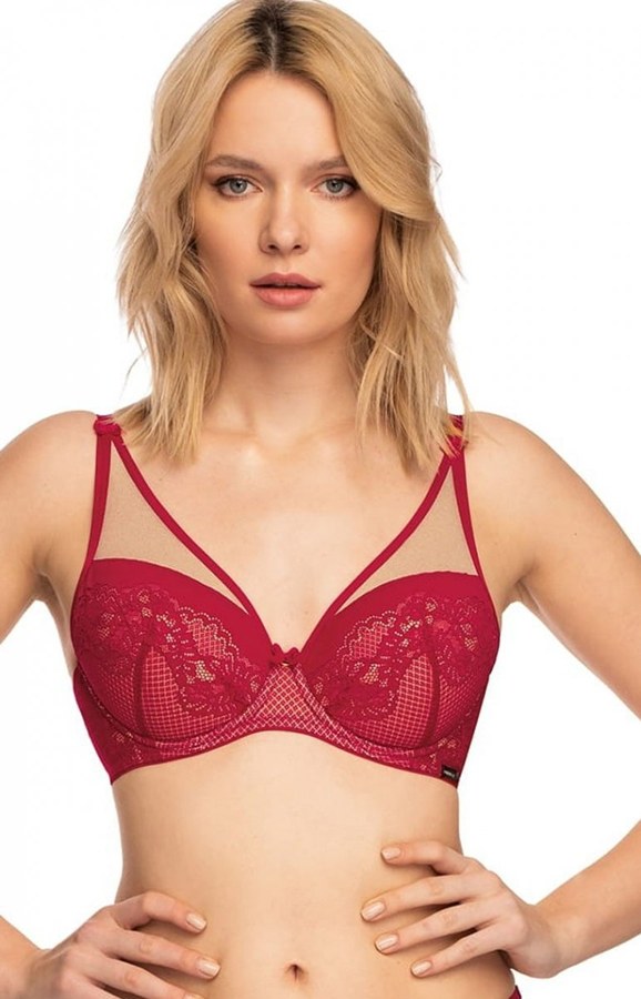 Biustonosz push‑up Casilda Nipplex – czerwony to efektowny i elegancki biustonosz typu push-up, który łączy klasyczny styl z komfortem noszenia. Model ten zaprojektowano tak, aby pięknie unosił i modelował biust, podkreślając jego naturalne kształty i eksponując dekolt dzięki subtelnej koronce i głębszej konstrukcji miseczek.