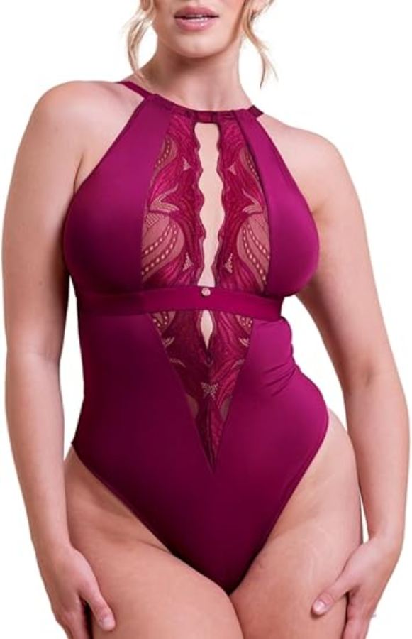Koronkowe body z głębokim dekoltem typu plunge pięknie eksponuje biust oraz linię dekoltu, nadając stylizacji zmysłowego charakteru. Miękkie miseczki subtelnie otulają biust, a elastyczny materiał dopasowuje się do ciała, zapewniając wygodę przez cały dzień. Dzięki eleganckiej formie body może być noszone zarówno jako bielizna, jak i stylowy element modnych stylizacji.