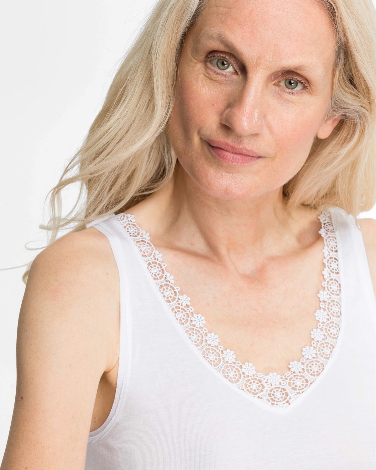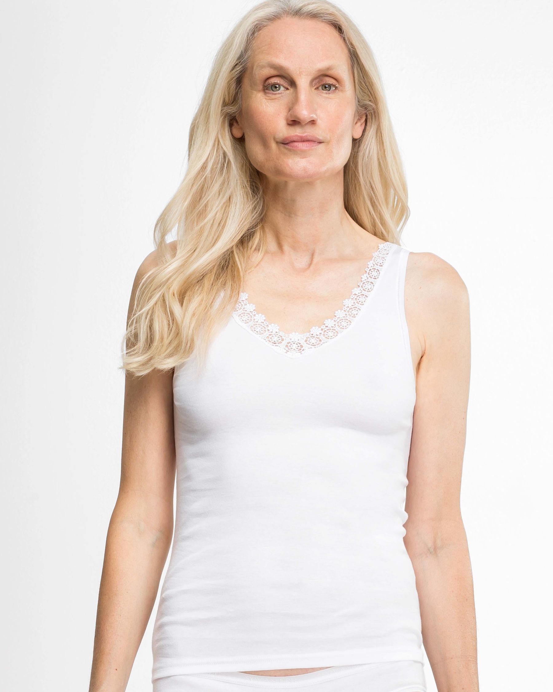Klasyczna koszulka na ramiączkach z koronką – biała