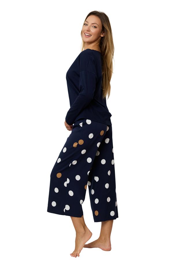 Piżama bawełniana Mefemi „OCEANE 7/8” – granatowa z groszkami