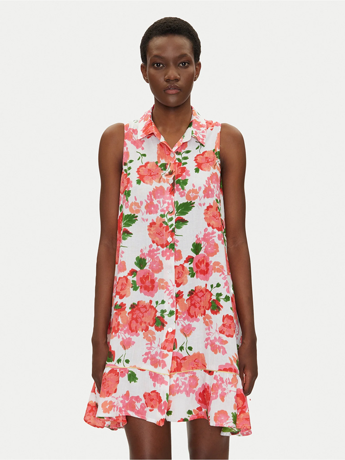Postaw na ponadczasową klasykę i swobodę z sukienką koszulową Iconique IC25-044 w kolorze białym z różowymi kwiatami. Ten model w stylu regular fit łączy lekkość z elegancją, tworząc idealną propozycję na plażę, letnie spacery czy wakacyjne wyjazdy.
