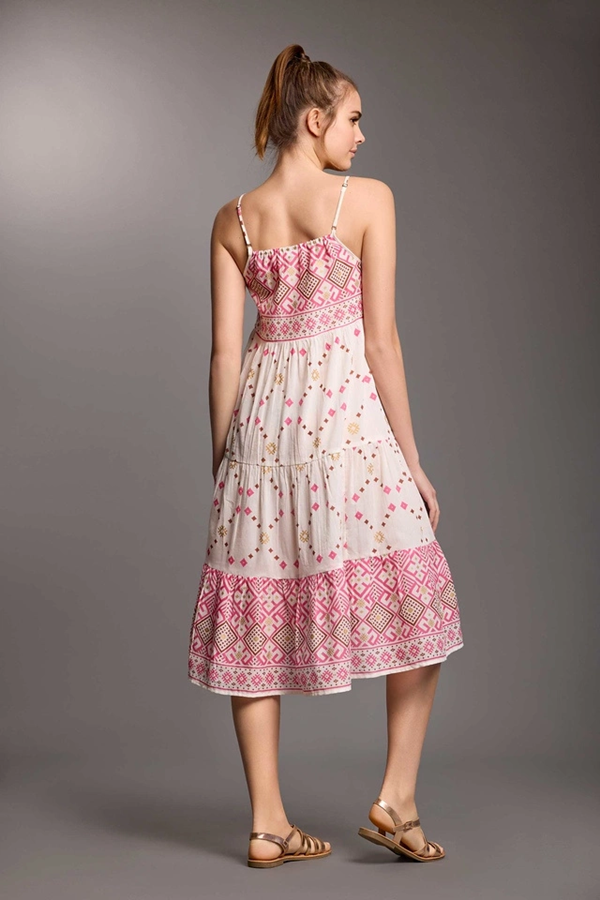• Styl: Sukienka plażowa z haftami i dekoracyjnymi detalami